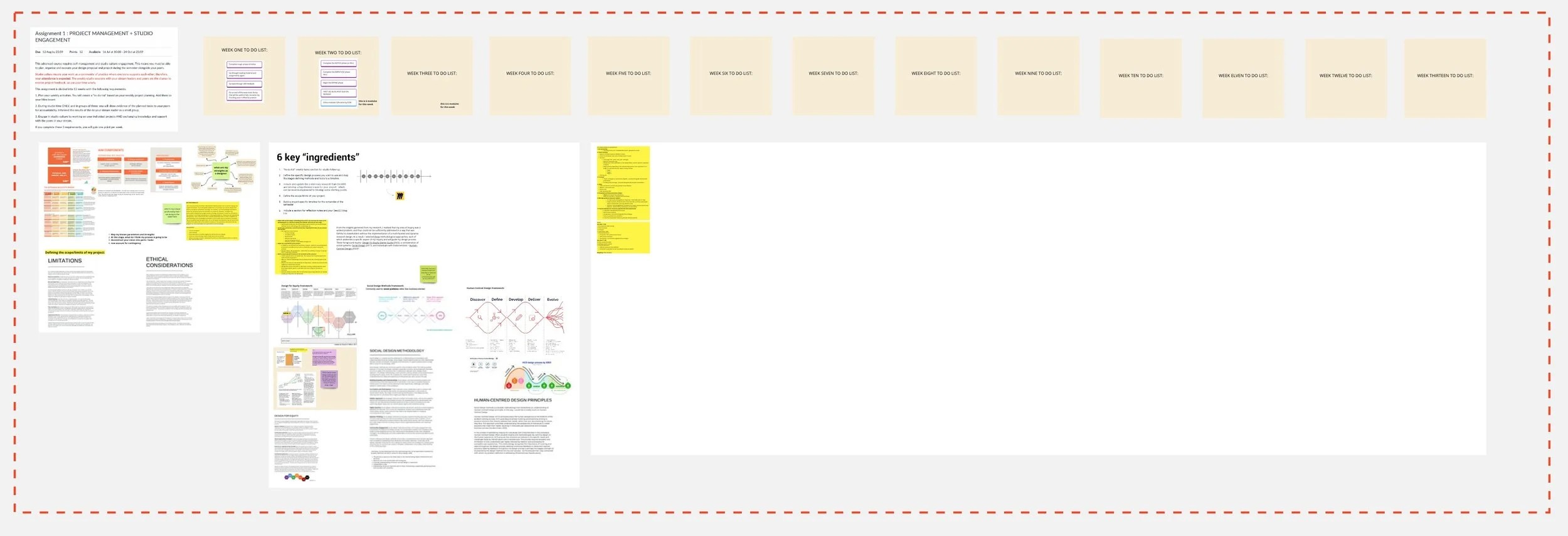 This is the section of my Miro for 301 which contains; weekly to-do lists, weekly brain dump as well as work that I completed each week (that does not go directly into my Design for Equity framework.